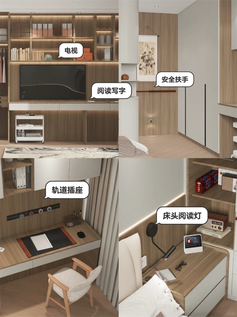 ??即使年輕人可能不選擇床頭柜,父母房間里一定要安排上,放置書、老花鏡、保溫杯等日常必需品~