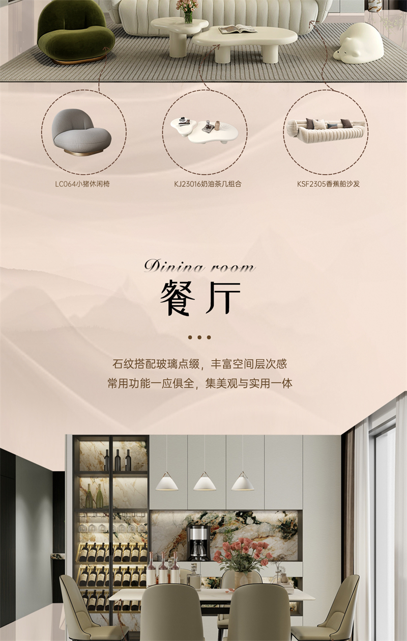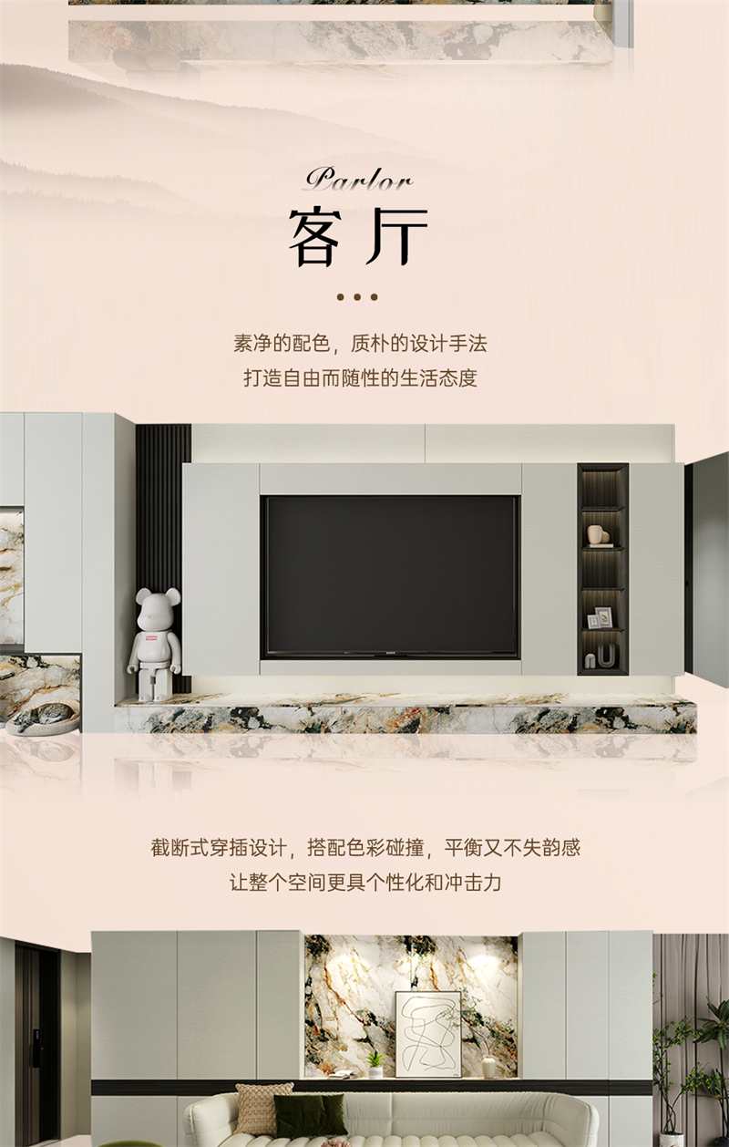 借助云水紋的元素,通過流動的線條,波動的紋理和現代的設計手法,打造舒適、放松、愉悅的家居氛圍。