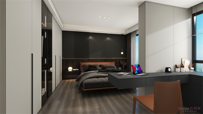 設計方案是一個意式簡約風的大平層,門板材料主要是以水性漆為主,客廳空間因為改造后跨度比較大,光線比較好,所以我們采用部分深色的墻面來搭配淺灰色的地板,讓空間大氣不失沉穩。設計理念:設計源于生活,生活因設計而改變,讓設計物有所值,讓細節締造完美!整家視界 全案生活|第六屆卡諾亞整家設計精英聯賽